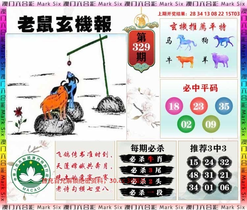 | 329期三肖 | 羊牛鼠 | 开:牛17 |