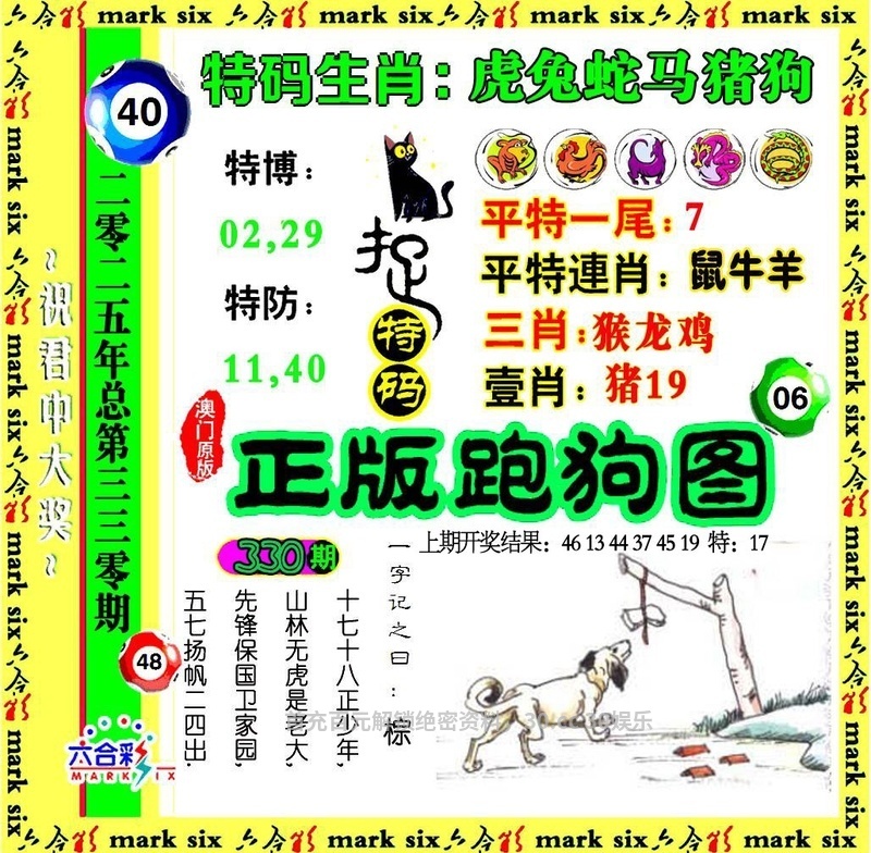 | 330期五肖 | 马龙鸡猴兔 | 开:马36 |