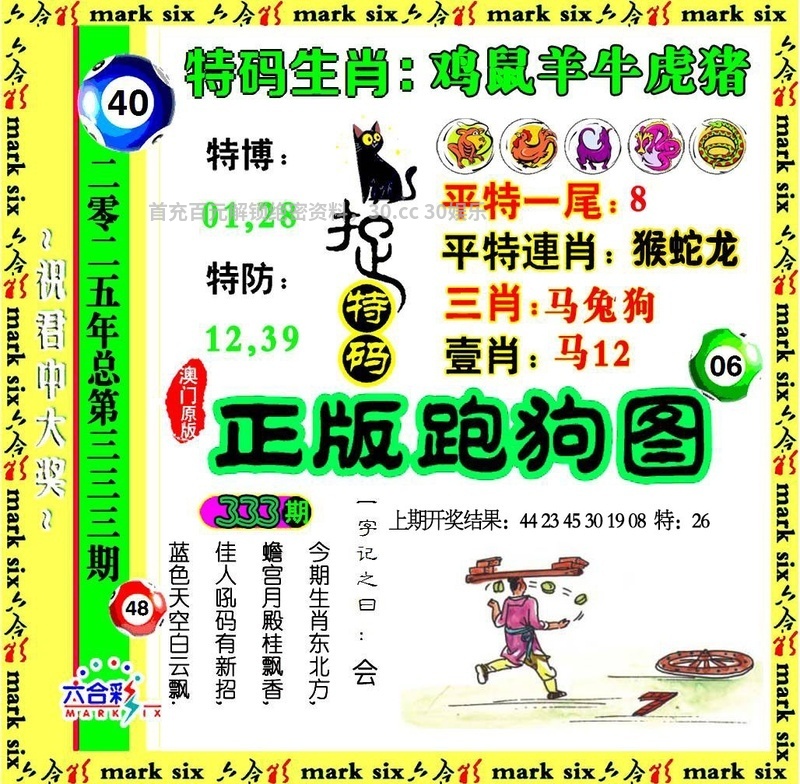 | 333期九肖 | 猴兔虎鼠猪蛇龙牛马 | 开:鼠06 |